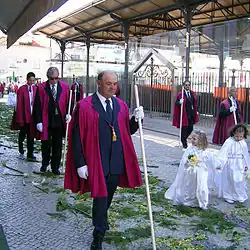 Osterprozession in Aveiro (2004), im Hintergrund der Fischmarkt Mercado de Peixe
