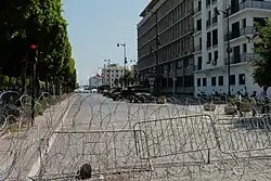 Absperrungen vor einem Ministerium in den Monaten nach der Revolution, 2011