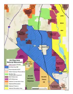 Der Mohave-Stamm setzt sich seit langem für den Schutz der natürlichen und kulturellen Ressourcen der Region ein.[1] Nachdem ein geplanter großer Windpark auf Widerstand der örtlichen Searchlight-Bewohner stieß, begannen Anwohner und Stammesgruppen im Jahr 2020, sich für die Ausweisung als National Monument einzusetzen. Die Clark County Commission stimmte einstimmig für die Ausweisung als National Monument. Im Februar 2022 brachte die Kongressabgeordnete Dina Titus einen Gesetzentwurf ein, der Avi Kwa Ame zum Nationaldenkmal erklärt hätte. Innenminister Deb Haaland besuchte das Gebiet im September 2022, um die Bedeutung des Schutzes der Region zu besprechen. Die Direktorin des Bureau of Land Management Tracy Stone-Manning veranstaltete im November 2022 eine Bürgerversammlung über eine mögliche Ausweisung. Am 30. November 2022 verkündete Präsident Biden den Teilnehmern des Tribal Nations Summit im Weißen Haus, dass er sich für den Schutz des Gebiets um Spirit Mountain einsetze.