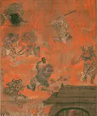 - ↑ Zur „Beschreibung“ der Schlimmsten (Avici-Unterwelt; 阿鼻地獄) vgl.: Reischauer, A. K.; Genshin’s Ojo Yoshu, Transactions Asiatic Soc Japan II. Ser. (Dec. 1930) S 40-6