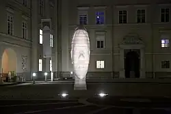 Dieses Kunstwerk ist auf eine Initiative der Salzburg Foundation zurückzuführen. Diese wurde 2001 als Privatinitiative gegründet und versteht sich als eine moderne Form des Mäzenatentums. Bei diesem Projekt, welches keine öffentlichen Subventionen erhält, geht es darum, internationale Künstler für die Stadt Salzburg zu begeistern und sie zu animieren, ein spezifisches Kunstwerk für einen Platz ihrer Wahl zu schaffen. Der Einladung folgten Künstler wie Manfred Wakolbinger, Anselm Kiefer, Mario Merz, Marina Abramović, Markus Lüpertz, James Turrell, Stephan Balkenhol, Christian Boltanski, Erwin Wurm, Brigitte Kowanz, Tony Cragg und eben auch Jaume Plensa.[2] Dieses Projekt wurde von der Würth-Gruppe finanziert und befindet sich auch in deren Besitz.[1]