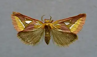 Die Falter erreichen eine Flügelspannweite von 22 bis 28 Millimeter.[1] Die Grundfarbe der Vorderflügel ist leuchtend rosa. In der Submarginalregion befindet sich ein großer, lang gestreckter gelber Fleck, der gegen den Innenrand mit einem silberweißen Streifen begrenzt ist. Vom Wurzelbereich gehen zwei weißliche Linien aus. Sehr auffällig ist ein großer tropfenförmiger silberweißer Fleck im Mittelfeld, der zuweilen wie eine Perle wirkt. Von diesem Merkmal leitet sich auch der wissenschaftliche Name der Art vom lateinischen margarita = „Perle“ ab.[2] Daneben befindet sich ein punktförmiger weiterer gleichfarbiger Fleck. Normalerweise sind diese beiden Flecke nicht miteinander verbunden. Nur gelegentlich verlaufen sie ineinander. Das Saumfeld sowie die Fransen sind hell rosa. Die Hinterflügel sind zeichnungslos graubraun gefärbt.
