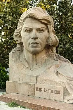 - ↑ Məhərrəm Zülfüqarli: Sovet dövrünün heykəlləri Ayna Mahmud qızı Sultanova. 525-ci qəzet, 15. April 2009, abgerufen am 20. Mai 2021.
