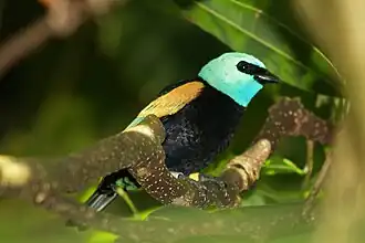 - ↑ a b c T. S. Schulenberg: Blue-necked Tanager (Tangara cyanicollis), Neotropical Birds Online. Ithaca: Cornell Lab of Ornithology. (online)