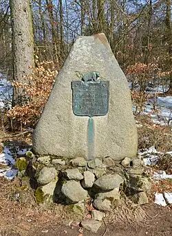 Das Bärendenkmal kennzeichnet die Stelle, an der im November 1696 in den anhaltischen Forsten (im Fürstentum Anhalt-Harzgerode) der letzte Braunbär erlegt worden ist.[3] Errichtet wurde das Denkmal um das Jahr 1900. Es handelt sich um einen Findling, an dem eine gusseiserne Platte mit folgender Inschrift angebracht wurde: „Der letzte Bär in den Anhaltischen Forsten wurde hier Ende des siebzehnten Jahrhunderts erlegt.“ Das Kleindenkmal steht auf geschichteten Feldsteinen.