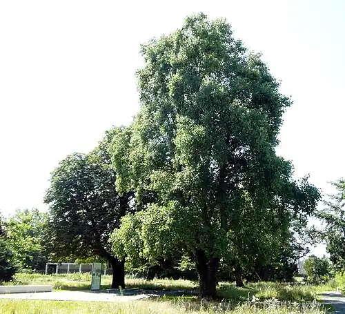 - Die Bäume erinnern an die ehemalige Laubhütte. Diese gehörte zur israelitischen Gartenbauschule, die am 30. Juni 1942 geschlossen wurde. Von September 1943 bis zum 8. April 1945 war dort ein Polizei-Ersatzgefängnis der Gestapo. Die Laubhütte wurde von der Gestapo im März 1945 als Hinrichtungsstätte benutzt und beim Abzug niedergebrannt. Das Naturdenkmal ist deshalb von historischer wie auch heimatkundlicher Bedeutung.