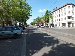 | Blick in einen Teil der Straße, nordwärts Richtung Bahnhof | |