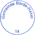 § 2 der Hauptsatzung der Gemeinde Börde-Hakel führt weder Wappen noch Flagge, sondern nur das Dienstsiegel ohne Siegelbild mit der Umschrift „Gemeinde Börde-Hakel“.[3]