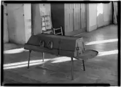 Der Bügeleisenofen, auch Plättofen genannt, ist ein spezieller Ofen des 19. Jahrhunderts. Er unterscheidet sich von einem Kochofen durch einen Aufsatz, an dem ein oder aber gleichzeitig mehrere Plätteisen aufgeheizt werden können.[1][2] Letzterer fand Verwendung bei Hutmachern, Büglerinnen und Schneidern, die große Mengen an Bügelwäsche zu bewältigen hatten.[3]