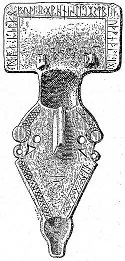 - ↑ Heinz Klingenberg: Runenschrift – Schriftdenken. Runeninschriften (= Germanische Bibliothek. Dritte Reihe: Untersuchungen und Einzeldarstellungen). Universitätsverlag Winter, Heidelberg 1973, ISBN 3-533-02180-7, S. 267ff. (Freiburg (Breisgau), Albert-Ludwigs-Universität, Habilitationsschrift, 1968).