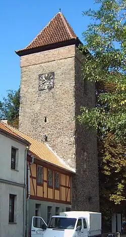 1858 wurde der Turm um ein Geschoss erhöht. In diesem Zusammenhang wurde die ursprünglich bereits bestehende Uhr durch die noch heute vorhandene Weule-Uhr mit achttägigem Gangwerk ersetzt. Das Erdgeschoss des Turms wurde zeitweise als Gefängnis, später als Schafstall genutzt. Der Zinnenkranz des Turms ist vermauert. Auf der innenstadtabgewandten Seite ist noch heute das ursprüngliche Wall-Graben-System zu erkennen.