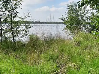 Moorlandschaft mit Nordwestufer des Sees im Hintergrund, Mai 2014