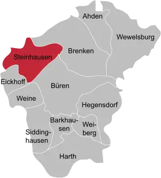 Steinhausen ist die zweitgrößte Ortschaft der Stadt Büren im Kreis Paderborn. Der Ort hat etwa 3523 Einwohner[1] (Stand 31. Dezember 2019). Der Ortsvorsteher ist Franz-Josef Borghoff (SPD[2]).[3]