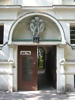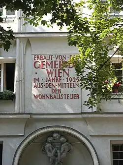 Die Wohnhausanlage wurde 1925 vom Architekten Heinrich Ried im Heimatstil errichtet. Besonders gestaltet wurde der Eingangsbereich mit Putten und zwei Taubenpaaren auf Säulenstümpfen zu beiden Seiten des Eingangs. Der reich gegliederte Hof fällt auch durch die Gestaltung der Fenster auf. Die Wohnhausanlage steht unter Denkmalschutz.