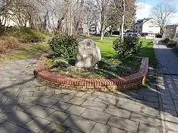 - Die Trauernde, eine steinerne Skulptur an der Kirche, von Josef Neuhaus, einem Neusser Künstler