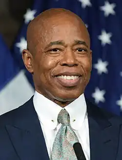 Eric Adams wurde 2021 als Kandidat der Demokratischen Partei zum Bürgermeister von New York City gewählt. In seiner Amtszeit verfolgte er eine sicherheitsbetonte Politik, unter anderem durch den verstärkten Einsatz von Polizeikräften in der U-Bahn und die Wiedereinführung von Zivilpatrouillen. Kritik erntete er für sein Krisenmanagement bei der Unterbringung von Migranten, seine Nulltoleranz-Strategie gegenüber Obdachlosen und wegen seiner Nähe zu Donald Trump.[1] Ende 2023 lag seine Zustimmung in Umfragen nur noch bei 28 Prozent.[2]