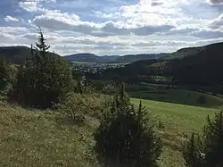 ![]() Naturschutzgebiet Bürgle (Hügel in der Bildmitte) | ||