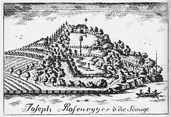1791 kaufte der Kunstgärtner Josef Rosenegger von Erzbischof Graf Colloredo das Gebiet des Bürglsteins einschließlich des Schlosses Bürglstein (heute Schloss Arenberg). Sein Vater Johann Rosenegger hatte dort bereits eine kleine Gärtnerei mit Glashäusern betrieben, in denen er Trauben und Südfrüchte züchtete. Josef Rosenegger war in Hellbrunn zum Landschaftsgärtner ausgebildet worden und begann unmittelbar nach dem Kauf mit der Neugestaltung und Erweiterung einer Parkanlage. Er errichtete auch ein „Weinwirtshaus“, baute ein Museum für seine römischen Funde und legte Spazierwege an, die von Skulpturen und Ruheplätzen gesäumt waren. Der Bürglstein griff mit seinen steilen Abhängen in diesem Raum noch in das freie und breite Bett der nicht regulierten Salzach ein. Dort war auch ein idyllischer Landeplatz für die Boote an der Salzach angelegt. Sein kunstvoller „Lustgarten“ gehörte damals zum Pflichtprogramm jedes Salzburgreisenden. Friedrich von Spaur schreibt in einem Brief vom 1803: