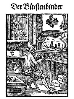 Heute werden die meisten Bürsten industriell gefertigt. Früher gab es eine eigene Zunft der Bürstenbinder. Die deutsche Handwerksordnung Anlage B führt den Bürstenmacher/Bürstenbinder noch heute als Handwerksberuf. Für Industrie und Handwerk gibt es seit 1984 den Ausbildungsberuf Bürsten- und Pinselmacher.