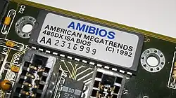 Das PC-BIOS[1], im Kontext von IBM-PC-kompatiblen Computern durchwegs kurz als BIOS bezeichnet (IPA: [], , von englisch basic input/output system), ist die System-Firmware des von IBM 1981 vorgestellten IBM PC „Model 5150“ und in Folge aller dazu kompatiblen Computer, was nahezu alle x86-PCs der zweiten Hälfte der 1980er Jahre, der 1990er und der 2000er Jahre umfasst. Neben Personal Computern wurde es aber auch beispielsweise in Workstations und Servern der x86-Architektur verwendet, um „PC-kompatibel“ zu sein. Das BIOS ist in einem nichtflüchtigen Speicher auf der Hauptplatine abgelegt und wird wie jede System-Firmware unmittelbar nach dessen Einschalten ausgeführt. Aufgabe des BIOS ist es unter anderem, den PC zunächst funktionsfähig zu machen und im Anschluss das Starten eines Betriebssystems einzuleiten.