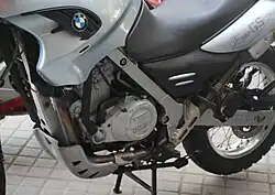 Wie beim Vormodell kam der Einzylindermotor vom österreichischen Hersteller BRP-Rotax zum Einsatz, nun aber mit Einspritzung.[1] Er hat eine relativ große Schwungmasse, was ein für Einzylindermotoren niedertouriges Fahren ermöglicht, ohne dass große mechanische Belastungen auftreten. Mit der Doppelzündung des Motors ab Baujahr 2004 ist ein typischer Verbrauch von 3,5 bis 4,5 Litern Normalbenzin auf 100 km möglich. Die GS ist mit Speichenrädern ausgestattet, vorne mit 19 und hinten mit 17 Zoll.