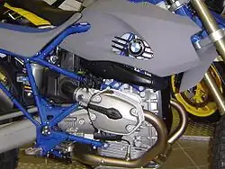 Die HP2 wird von einem luft- und ölgekühlten Boxermotor angetrieben. Der Viertaktmotor hat zwei Zylinder und je eine Nockenwelle und vier Ventile pro Zylinder. BMW entfernte die zentrale Ausgleichswelle der GS, wodurch der Motor um 1,5 kg leichter wird und schneller hochdreht.[4] Die zwei Zylinder haben eine Bohrung von ⌀ 101 mm Durchmesser, die Kolben einen Hub von 73 mm bei einem Verdichtungsverhältnis von 11:1. Die exponierten Ventildeckel sind aus Magnesium. Der Ansaugschnorchel ist leicht modifiziert und trägt einen demontierbaren Spritzwasser-Abweiser.