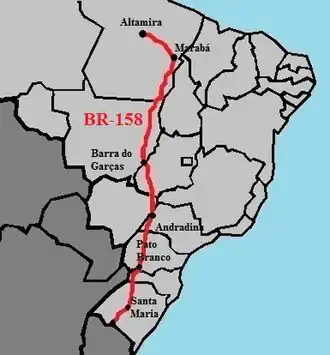 Die brasilianische Bundesstraße BR-158 ist eine von Nord nach Süd laufende Fernstraße. Sie beginnt in der Stadt Altamira im Bundesstaat Pará und führt durch die Bundesstaaten Mato Grosso, Goiás, Mato Grosso do Sul, São Paulo, Paraná, Santa Catarina und Rio Grande do Sul, wo sie in der Stadt Santana do Livramento an der Grenze zu Uruguay endet.