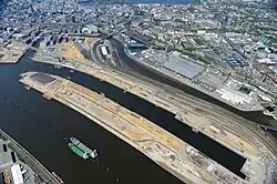 • Aufschüttung einer rund 1½ Hektar großen „Insel“ im Ostteil des Hafenbeckens als Grün- und Freizeitanlage