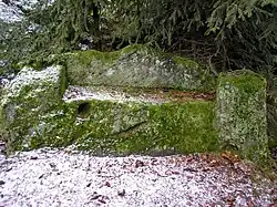Auf dem Plateau sind keine Felsabarbeitungen zu erkennen. Um den haushohen Felsen herum liegen noch einige kleinere Blöcke.
