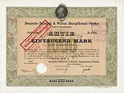 Aktie über 1000 Mark der Deutsche Babcock & Wilcox Dampfkessel-Werke AG vom 30. September 1916
