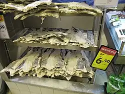 - ↑ a b Durchführungsverordnung (EU) Nr. 409/2014 der Kommission vom 23. April 2014 zur Eintragung einer Bezeichnung in das Register der garantiert traditionellen Spezialitäten (Bacalhau de Cura Tradicional Portuguesa (g.t.S.)), abgerufen am 5. Oktober 2019. In: Amtsblatt der Europäischen Union. L, Nr. 121, 24. April 2014, S. 20.