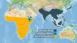 - ↑ D. Zinner, G. H. Fickenscher, C. Roos: Family Cercopithecidae (Old World monkeys). In: Russell A. Mittermeier, Anthony B. Rylands, Don E. Wilson (Hrsg.): Handbook of the Mammals of the World. Band 3: Primates. Lynx Edicions, Barcelona 2013, ISBN 978-84-96553-89-7, S. 550 (englisch).