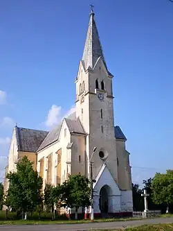 Das Dorf ist planmäßig angelegt mit geraden, zueinander rechtwinkligen Straßen. Die Kirche ist im gotischen Stil gebaut, hat eine Höhe von 56 m (Turm+Kreuz) und ist damit wahrscheinlich die höchste Dorfkirche Rumäniens. Sie ersetzte eine früher bestehende Kirche und wurde 1867 geweiht auf den Schutzpatron Hl. Johannes von Nepomuk.
