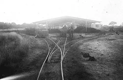 ![]() ![]() Jung-Feldbahntriebwagen Typ MS 13 vor dem Moorlagerschuppen der Moorbahn Die Moorbahn überquerte auf einer Drehbrücke ein Anschlussgleis der AKN-Bahn ![]() Jung-Feldbahntriebwagen Typ MS 13 vor dem Moorlagerschuppen der Moorbahn | |