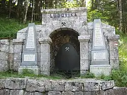 Der Entwurf des Stollenportals von Bergrat Karl Balz Edler von Balzberg nimmt formal und gestisch das Motiv antiker Gedenkbögen auf, die in Rom für denkwürdige Ereignisse errichtet wurden, die mit der Person des herrschenden Kaisers zusammenhingen.
