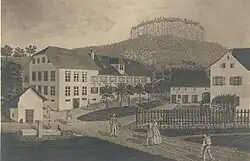 Das heutige Hotel Bad Schauenburg hat seinen Ursprung in einem erstmals 1465 erwähnten Kloster[1]. 1502 wird ein Hofgut Schauenburg erwähnt, welches zur Herrschaft Schauenburg[2] gehörte. Burg und Hofgut gingen in den Besitz der Stadt Liestal. Anno 1643 wurde das Hofgut durch den Ratsherrn und Stadtschreiber, von Liestal, Hans Jakob Keller, von Basel, erworben.