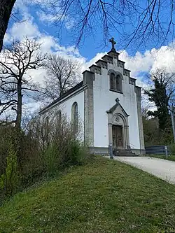Die 1880/81 nach Plänen des Badener Architekten Robert Moser errichtete Kurkapelle ist im Rundbogenstil erbaut und Teil des Kurensembles von Bad Schinznach. Der Kleinbau besitzt eine schmucke Treppengiebelfront. Die Aussenwände sind weiss und das Ziegeldach ist nach oben spitz zulaufend. Die Kurkapelle entstand durch Spenden der Kurgäste und wurde durch beide Konfessionen genutzt. 1998/99 erfolgte die Umgestaltung in eine „Hochzeitskapelle“. Dabei wurde die zeitgenössische Dekorationsmalerei zum Leidwesen der Denkmalpflege durch Tatjana Tiziana neu bemalt. Von der ursprünglichen Innenausstattung sind heute noch der Altar, die Kanzel und die Kirchbänke mit gusseisernen Wangen erhalten.[31]