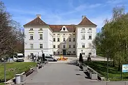 Gemäß Landtagsbeschluss vom 27. März 1928 wurde der Ortsname auf Bad Vöslau abgeändert.[4] 1954 wurde die Ortsgemeinde Bad Vöslau zur Stadt erhoben.[5] Das ehemalige Schloss wird seit einem Umbau 1974 als Rathaus verwendet.