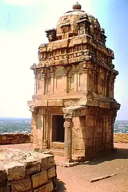 Von diesem – auf einer Terrasse an der Bergflanke stehenden – Tempel ohne Plattform oder ausgeprägte Sockelzone ist lediglich das Sanktum mit einem bemerkenswerten Turmaufbau im südindischen Dravida-Stil erhalten. Der mehrgeschossige Turm endet in einer zentralen oktogonalen Haupt'kuppel' mit vier kleineren Begleitpavillons – eine Konstellation, die sich am Vorbild des nur wenige Jahre älteren Malegitti-Shivalaya-Tempel orientiert, dessen Formenrepertoire in wesentlichen Teilen wiederum auf zwei der fünf Ratha-Schreine im südindischen Mamallapuram zurückgeführt werden kann. Trotz der verwendeten massiven Steine und Platten macht der Bau wegen seiner vielfachen Gliederungen in seinem Gesamtbild einen durchaus eleganten Eindruck. Die ehemalige – auf schlanken oktogonalen Pfeilern ruhende und ursprünglich wohl flachgedeckte – Vorhalle (mandapa) ist nur noch bruchstückhaft erhalten, macht jedoch einen leichteren Eindruck als die Vorhalle des Malegitti-Shivalaya-Tempels. Das Portalgewände ist zwar mehrfach abgestuft, verfügt jedoch nur über wenig ornamentale oder figürliche Bauzier. Im Tempelinnern befindet sich eine runde Steinsetzung – wahrscheinlich eine Art Yoni; der dazugehörige Lingam ist jedoch verschwunden.