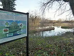 „[…] die SpaziergängerInnen/AnwohnerInnen durch die Aufstellung von zwei Informationstafeln an geeigneten Stellen (mit Blick auf die Teiche) über den einzigartigen Amphibienbestand in der Region (vorkommende Arten, Wanderwege etc.) zu informieren und so zum Verständnis für den besonderen Schutz dieser Fläche beizutragen. Weiterhin soll auf den Informationstafeln ein Hinweis auf die Möglichkeit von Führungen für Schulklassen und Kitas unter Angabe der Telefonnummer des entsprechenden Ansprechpartners bzw. der Ansprechpartnerin beim BUND angebracht sein.
