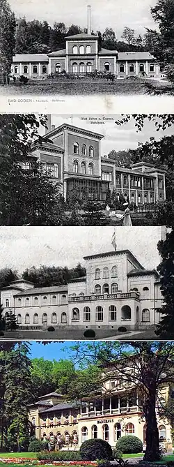 1896/97 wurde der Innenraum modernisiert und 1906 wurde das Gebäude um eine weitere Etage aufgestockt. Kurz darauf zog das „Mediko-mechanische Institut“ in den 1. Stock des Gebäudes. Des Weiteren wurde ein Laboratorium für Sputum-Untersuchungen und ein bakteriologisch-chemisches Institut eingerichtet. 1913/14 wurde das Gebäude ein weiteres Mal erweitert. Während des Zweiten Weltkriegs erlitt das Gebäude schwere Schäden, wobei das obere Stockwerk zerstört wurde. Im Juni 1947 konnte das Badehaus mit notdürftiger Herrichtung seinen Betrieb wieder aufnehmen.[2] In den 1950er Jahren wurde es erneut umgebaut, wobei der Balkon eine Glasfassade bekam, um einen weiteren Raum zu bekommen.