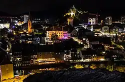 Die Badenfahrt ist ein mehrtägiges Volksfest in Baden AG (Schweiz), das in der Regel alle zehn Jahre stattfindet. Die Veranstaltung zählte bei den jüngsten Austragungen mehr als eine Million Besucher und ist damit eines der grössten Feste der Schweiz und das mit Abstand grösste im Kanton Aargau. Das Bundesamt für Kultur führt die Badenfahrt seit Juli 2017 auf der Liste der lebendigen Traditionen in der Schweiz.[1] Das Fest gehört damit zum immateriellen Kulturerbe des Landes. Bisweilen findet fünf Jahre vor bzw. nach einer Badenfahrt ein Stadtfest statt, das im Volksmund «kleine Badenfahrt» genannt wird. So fand auch im Jahre 2012 vom 17. bis zum 26. August ein Stadtfest unter dem Motto «Geschichten Schichten» statt, das auch an die Zerstörung von Schloss Stein 300 Jahre vorher erinnerte.[2]