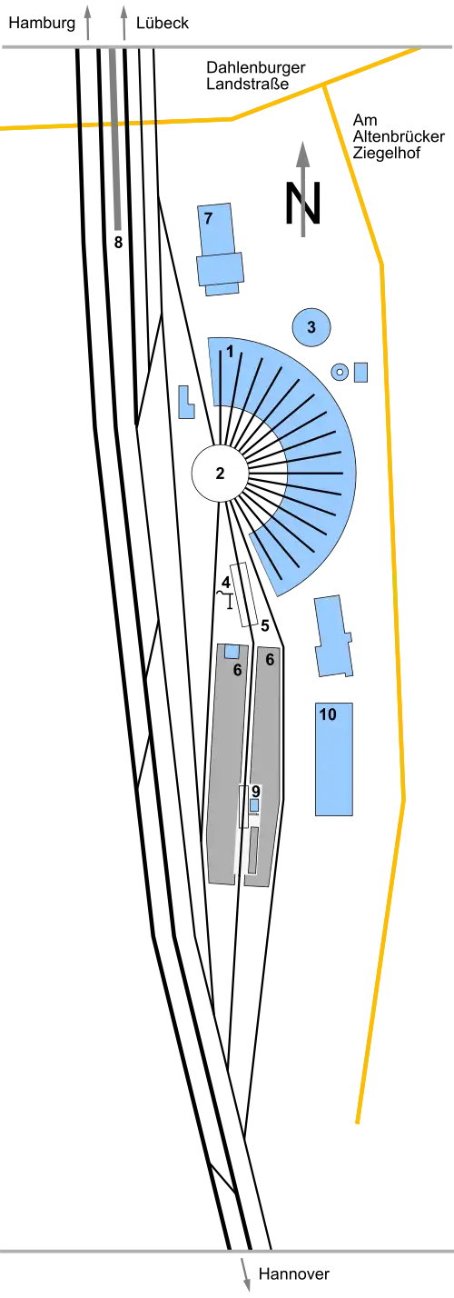 - ↑ Deutsche Bundesbahn (Hrsg.): Bahnhof Lüneburg. Zeichnung und Gleisplan. Vermessungsbüro der Bundesbahndirektion Hamburg, November 1984.