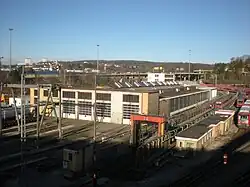 Im Jahr 2011 wurden die südlichen Gleisanlagen des Rangierbahnhofs abgerissen und das Gelände nach Fliegerbomben aus dem Zweiten Weltkrieg abgesucht, wobei allerdings keine Bomben gefunden wurden. Daraufhin begannen im Dezember 2011 die Bauarbeiten für die Werkstatt.[11] Am 9. August 2012 fand das Richtfest für die Halle statt.[12] Die Fertigstellung erfolgte im November 2013.[13]