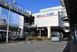An der Westseite der Anlage verlaufen drei weitere Gleise. Während das westlichste als Abstellgleis dient, gehören die beiden anderen zur Tökaidō-Güterlinie. Diese ausschließlich dem Schienengüterverkehr vorbehaltene Strecke gehört der Bahngesellschaft JR Freight und dient der weiträumigen Umfahrung des Ballungsraumes Yokohama. Der südliche Reiterbahnhof ist an seiner Ostseite ist mit dem sechsgeschossigen Einkaufszentrum Lumine Wing verbunden, das einer Tochtergesellschaft von JR East gehört. Von beiden Gebäuden aus ist der erhöht liegende Kopfbahnhof der Shōnan Monorail erreichbar. Ihre Fahrbahn ist von zwei Seitenbahnsteigen umgeben, sodass das Ein- und Aussteigen getrennt erfolgen kann. Sämtliche Gebäude des Bahnhofs sind barrierefrei.