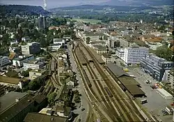 - ↑ Hanak et al.: Bahnhof Aarau – Chronik eines Baudenkmals. S. 14.