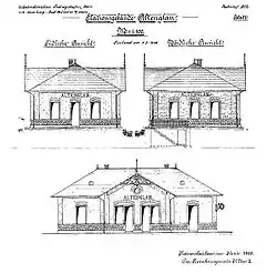 In der ersten Hälfte des 20. Jahrhunderts befand sich am Bahnhof ein Kiosk. Nachdem im Jahr 1933 Adolf Hitler und die NSDAP an die Macht gekommen waren, wurde er auf deren Initiative geschlossen, weil er von ihr als Sammelbecken politisch linker Kräfte betrachtet worden war.[25] Zum Bahnhof gehörte noch ein früheres Verwaltungsgebäude an der Ladestraße, das keinen neuen Verwendungszweck fand.[22]