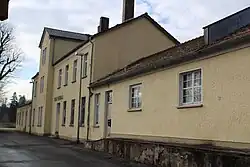 Ein angebauter Güterschuppen verfügte über eine Seitenrampe und eine stirnseitige Feuergutrampe. Es handelte sich um eine Fachwerkkonstruktion mit Ziegelausfachung. Anfangs waren die Satteldächer mit Naturschiefer und später mit Ziegeln eingedeckt. Hinzu kam noch ein Aborthäuschen sowie ein Stall- und ein Wirtschaftsgebäude.[21]
