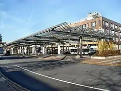 Vor dem Empfangsgebäude des Bensheimer Bahnhofs befindet sich der überdachte Busbahnhof mit sieben Haltestellen und Verbindungen in die Bensheimer Stadtteile per Citybus sowie ins Lautertal, nach Bürstadt, Heppenheim, Jugenheim und Lorsch per Linienbus.