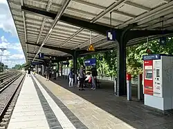 Der Bahnhof besitzt einen Mittelbahnsteig, den die S-Bahn von beiden Seiten befährt. Auf der östlichen Seite befinden sich zwei Durchfahrtsgleise der Fernbahn. Der Bahnsteig verfügt über eine Überdachung, ein Aufsichtsgebäude und einen kleinen Imbissstand.